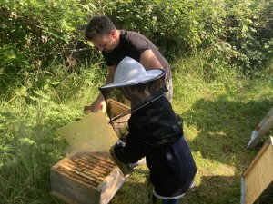 Anfang des Jahres 2024 zogen nach mehreren Jahren Pause wieder Bienen in den Garten der Villa Kunigunde ein. Bei der Honigernte helfen immer wieder BewohnerInnen und Freunde mit. Für Interessierte bietet Michael Imker-Kurse im Villa-Garten an: https://naturgarten-bamberg.de/imkerkurs/